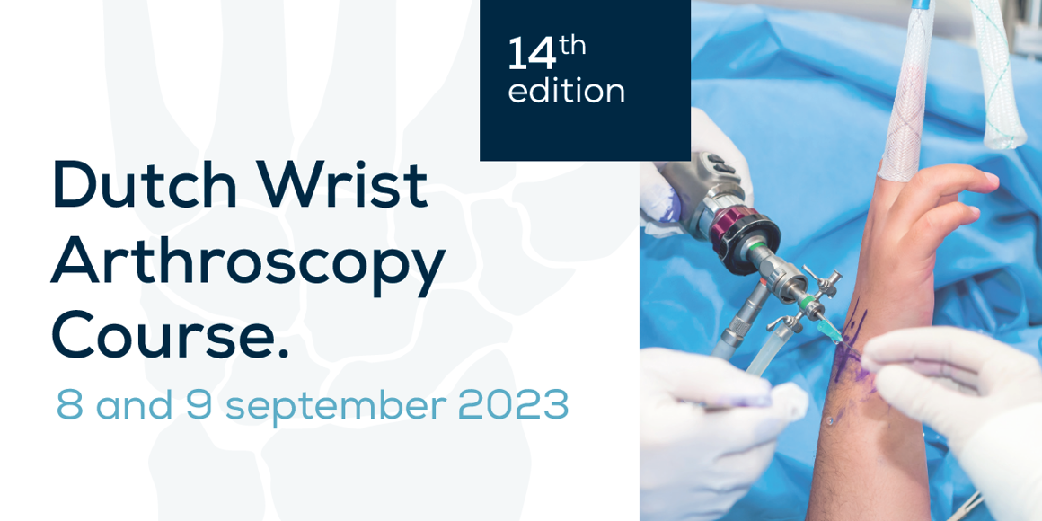 Save the date: op 8 en 9 september 2023 vindt de 14e editie plaats van het de Dutch Wrist Arthroscopy Course plaats bij het SkillsLab - medical-technical training centre Erasmus MC, Rotterdam.